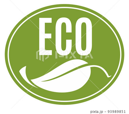 Green leaf with the inscription eco. Eco packaging, sticker, healthy food.