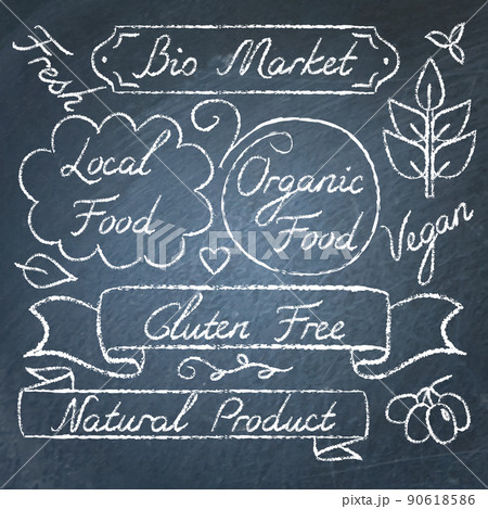 Healthy food. Eco organic labels. Bio ecology vegan badge hand drawn. Vector healthy food icon