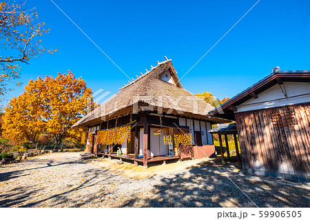 兵庫県立有馬富士公園・秋風漂う茅葺き民家(収穫の季節)/兵庫県三田市
