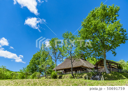 藁ぶき屋根の田舎風景