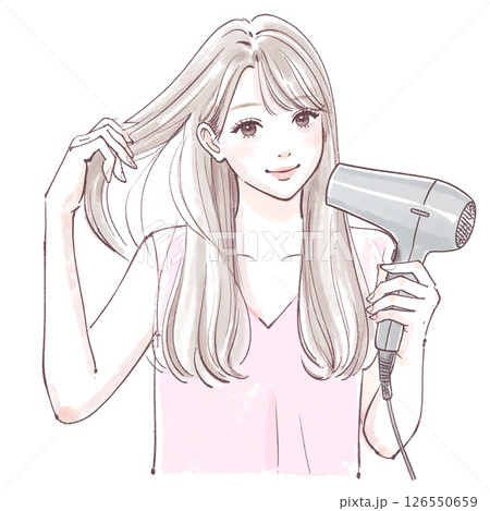 髪を乾かす女性|美容・ライフスタイルイメージ