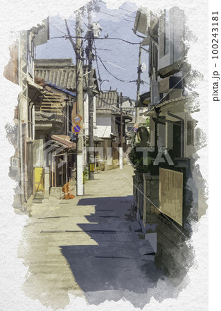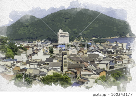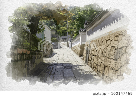 水彩画風 鞆の浦 鞆の浦の町並み 広島県福山市
