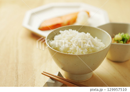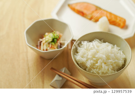 ごはん・朝ごはん・和定食(白ごはん・焼き鮭・冷奴)
