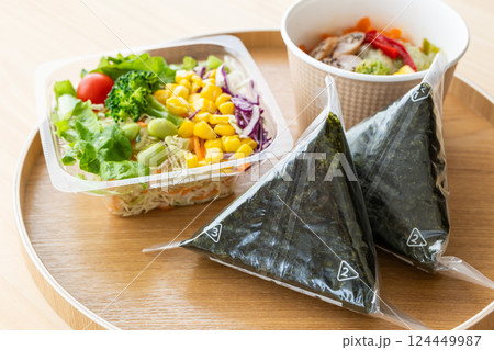 コンビニのおにぎりとサラダ コンビニ飯 コンビニランチ