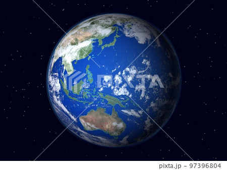 地球 日本 ブルー ワイドサイズ コピースペース 背景に星アリ(3DCGイメージ)