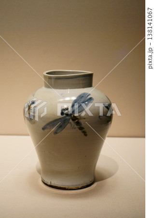 9651 青花鶴亀文壺