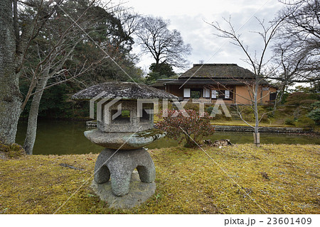 仙洞御所 醒花亭の朝鮮灯篭とふくろうの手水鉢