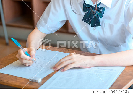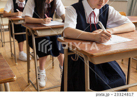 学校・予備校で模試・試験・受験・テストを受ける中学生・高校生・小学生の女の子(制服)