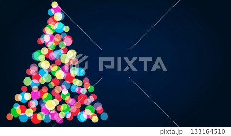 カラフルな光の粒で描かれたクリスマスツリーの幻想的なシルエット背景イラスト