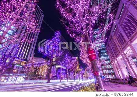 Winter city (office district),雪化粧した街の風景(駅前のオフィス街)