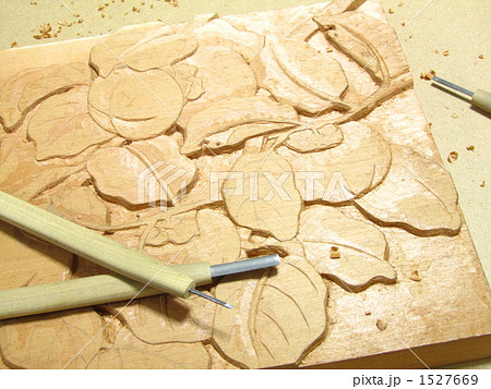 彫刻刀と彫り物【木彫り教室・習い事イメージ】 (横)