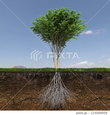 tree and soil cut under it. Isolated garden element, 3D illustration, cg render
