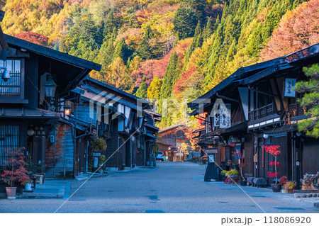 秋の信州木曽路 紅葉の奈良井宿