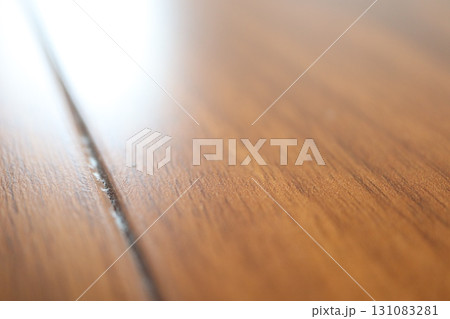 フローリングの隙間にたまった白い汚れと埃のクローズアップ