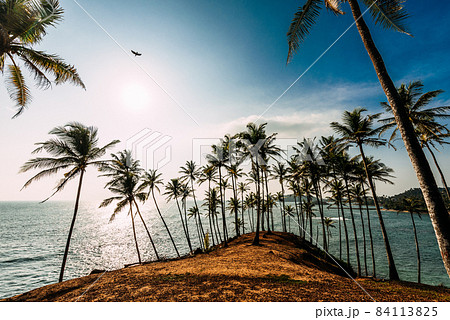 Cape by the ocean. Sea sunset. The dawn of the sea. Landscapes Of Asia. Landscapes of Sri Lanka. Palm trees on the beach. Palm trees at sunset. Beautiful picture. Beautiful place by the ocean