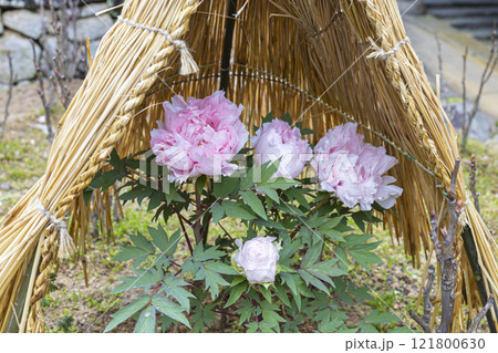 雪囲いの冬牡丹