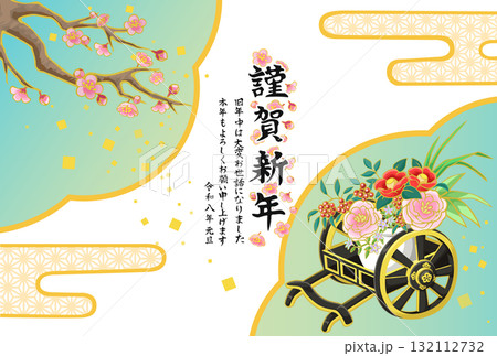2024年 年賀状テンプレート 御所車 梅の木