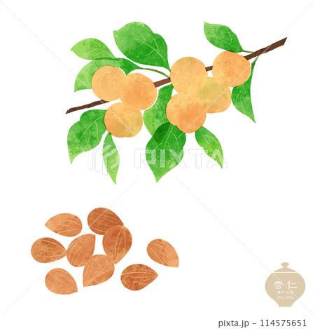 生薬のイラスト/ 杏仁の枝と種子
