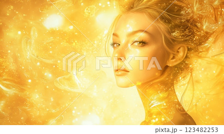 光輝く黄金の女神 – 未来の幻想的な女性肖像