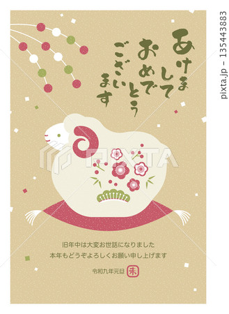未年の年賀状テンプレート ベクター 羊 置き物 和風 かわいい シンプル