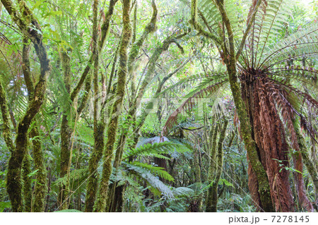 シダや樹木が鬱蒼と茂るジャングルの風景