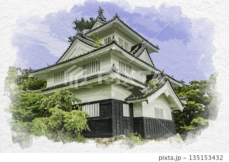 水彩画風 小浜城跡 本丸石垣 福井県小浜市