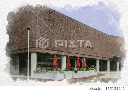 水彩画風 豊橋公園 豊橋市三の丸会館 愛知県豊橋市