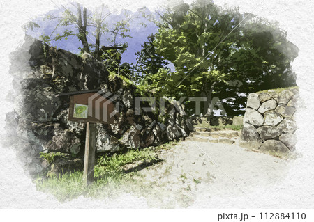 水彩画風 飯山城址公園 本丸門跡 長野県飯山市