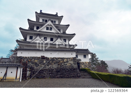 晴れ渡った新発田城址公園から新発田城 三階櫓(新潟県新発田市)