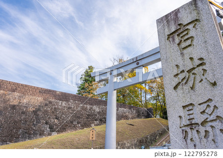 宮城縣護國神社 表参道大鳥居 社号標 本丸北壁石垣