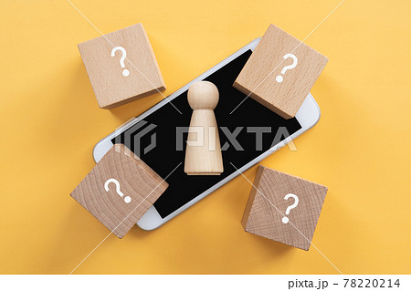 匿名、名無し、不明、特定できない|はてなマークの積み木と人型のオブジェとスマホ