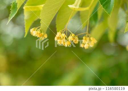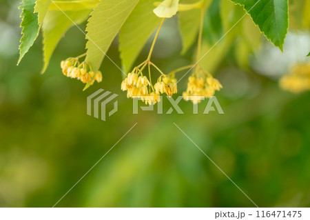 滋賀県東近江市 百済寺の境内で満開を迎え良い香りを放っている菩提樹の花