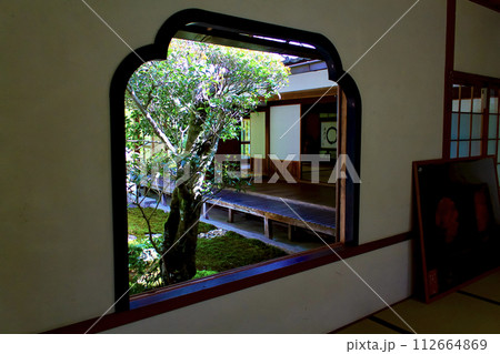 【京都】春の源光庵 本堂の悟りの窓(丸窓)