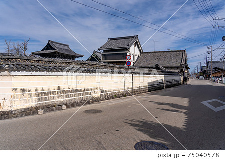 三重県津市一身田の高田本山専修寺へ向かう道と白壁