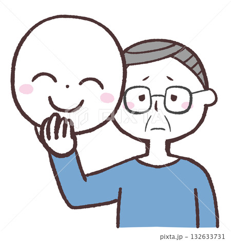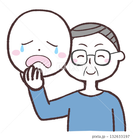 泣いてる仮面の下は笑っているシニア男性のイラスト