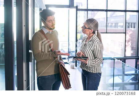 Deciding on what move to make next. Shot of two businesspeople using a digital tablet together in an office.