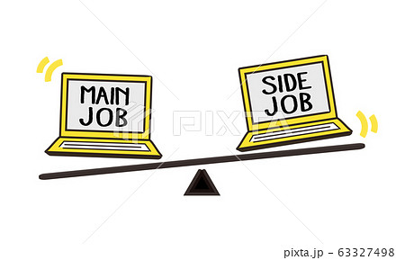 副業で稼ぐイラストイメージ、本業と副業、ベクター素材