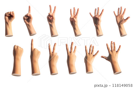 Kids hand counting fingers. zero, one, two, three, four, five, numbers isolated. Gestures set on