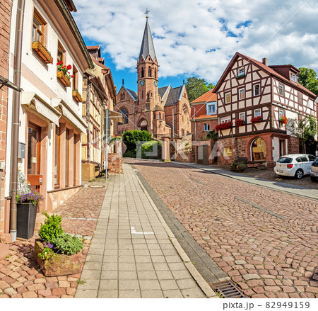 View to St. Jacobus church in the medieval German city of Miltenberg during daytime
