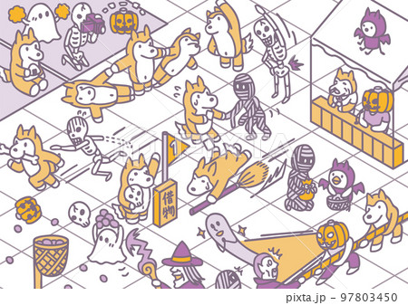 運動会 十月のイメージ ハロウィン 犬 悪魔 骸骨