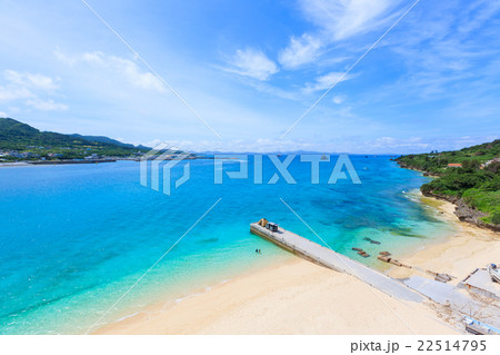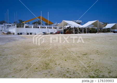 沖縄の海辺、海洋施設の砂浜(もとぶ元気村)
