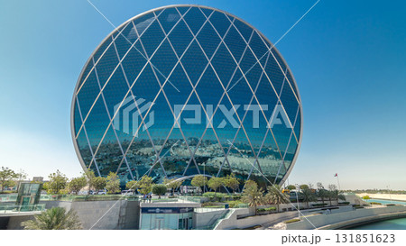 Circular skyscraper Aldar Headquarters Building timelapse in Abu Dhabi, UAE.