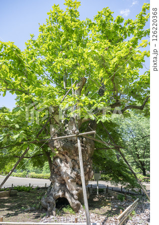 朴の木を見上げる