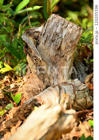 山の中の朽ちた切り株