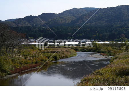 高島市朽木地区を流れる清流北川と針葉樹林 滋賀県