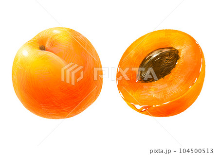手描きフルーツ イラスト 杏(あんず、アンズ) 半分 種あり 2点セット