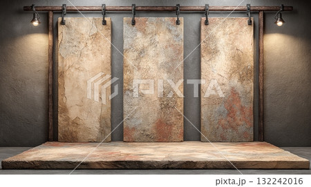Rustic Wooden Table for Product Display, Sturdy Rectangular Top, Thick Legs, Neutral Background, Natural Texture, Merchandise Presentation, Minimalist Design