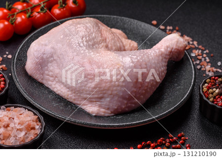 Chicken raw leg or quarter, fresh meat for cooking on barbecue. Chicken quarter