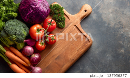 A Variety of Colorful Fresh Vegetables and Fruits Beautifully Displayed on a Rustic Surface