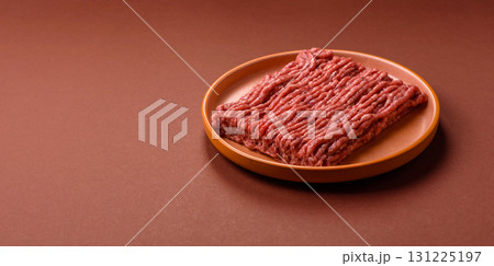 Raw ground beef meat food, ingredient for making cutlets or meatballs. Raw ground beef